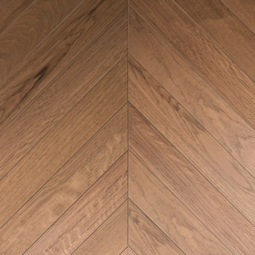 Французская ёлка (Chevron паркет) - традиционный вид укладки напольного покрытия, родом из Франции. В отличие от Английской ёлки, планки Шеврон-паркета не пересекаются под прямым углом, а запиливаются под углом в 45 градусов и стыкуются между собой, образуя зигзагообразный рисунок.
