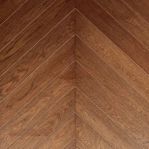 Французская ёлка (Chevron паркет) - традиционный вид укладки напольного покрытия, родом из Франции. В отличие от Английской ёлки, планки Шеврон-паркета не пересекаются под прямым углом, а запиливаются под углом в 45 градусов и стыкуются между собой, образуя зигзагообразный рисунок.