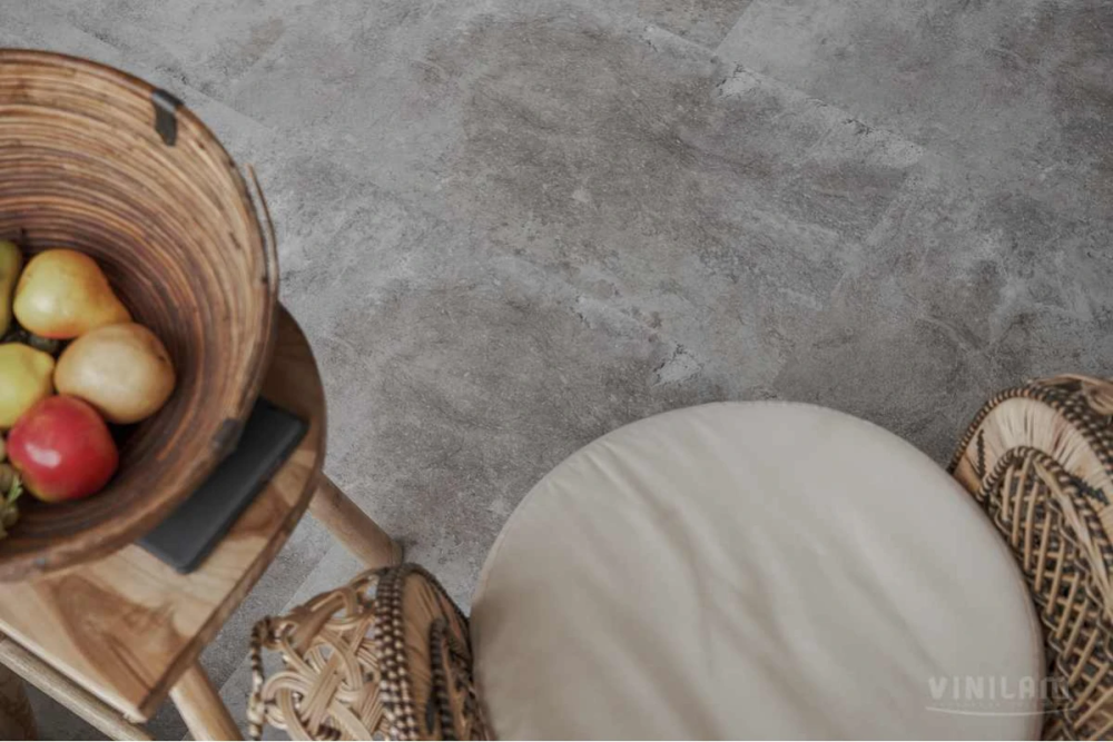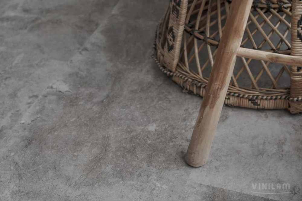 Коллекция Ceramo Stone Glue — клеевой виниловый пол на основе LVT первичный винил - водостойкий, термостабильный — является заменой керамической плитке с укладкой плавающим способом. Защитный слой 0,5 мм из прозрачного ПВХ + 2 слоя полиуретана с керамической крошкой и антибактериальными добавками обеспечивает 43 класс эксплуатации. Материал подходит для тёплого пола, не скользкий (класс R10), износостойкий (класс T), светостойкий (>6), стойкий к химикатам и колёсикам кресел, противопожарный (класс КМ2). Тиснение в регистр с эффектом брашированной поверхности полностью повторяет фотографический декоративный слой. Нет выраженной фаски.