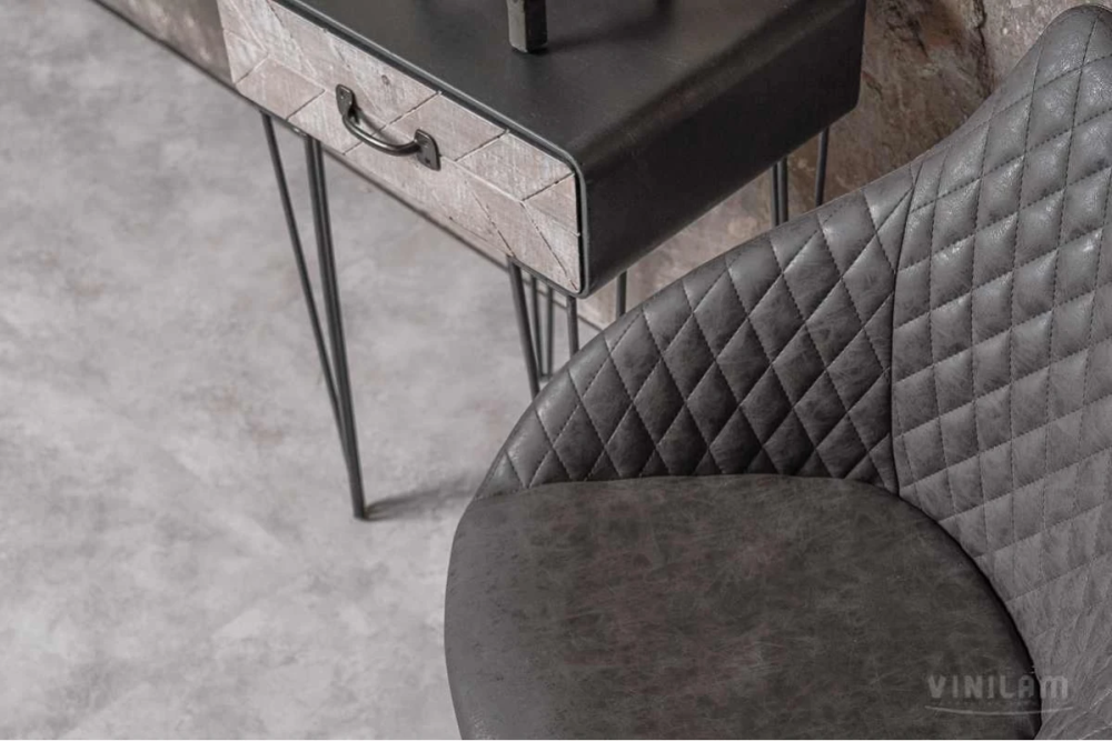 Коллекция Ceramo Stone Glue — клеевой виниловый пол на основе LVT первичный винил - водостойкий, термостабильный — является заменой керамической плитке с укладкой плавающим способом. Защитный слой 0,5 мм из прозрачного ПВХ + 2 слоя полиуретана с керамической крошкой и антибактериальными добавками обеспечивает 43 класс эксплуатации. Материал подходит для тёплого пола, не скользкий (класс R10), износостойкий (класс T), светостойкий (>6), стойкий к химикатам и колёсикам кресел, противопожарный (класс КМ2). Тиснение в регистр с эффектом брашированной поверхности полностью повторяет фотографический декоративный слой. Нет выраженной фаски.